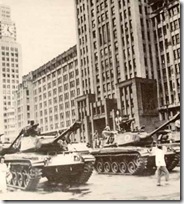 Podemos, desta forma, assinalar que aqui começa a nascer o golpe militar que Olympio Mourão Filho levaria a cabo durante os próximos meses, conspirando em todos os Estados por que passou a serviço militar — Rio Grande do Sul, Paraná, Santa Catarina, São Paulo e por fim, Minas Gerais — buscando apoio em setores como a burguesia industrial e as Forças Armadas, alertando sobre o suposto “golpe definitivo para a instalação da república sindicalista do Sr. Brizola”. [6] Em 31 de março de 64 suas tropas saem de Juiz de Fora e chegam ao Rio, ato simbolicamente considerado como o início do Golpe. O que Mourão não podia saber era que sua conspiração apenas fazia parte de um processo ainda maior, onde setores empresariais, sediados no IPES e no IBAD, junto com a mídia conservadora e militares americanófilos da ESG controlavam passo a passo seus movimentos. Suas tropas que invadiram o Rio de Janeiro cumpriram um papel, mas logo a “revolução” passaria a outras mãos, que tratariam de impor a política mais de acordo com o grupo acima citado. Mourão morreu arrependido e desiludido – não por ter derrubado um legítimo presidente, mas sim por ter servido indiretamente aos interesses destes grupos reacionários.