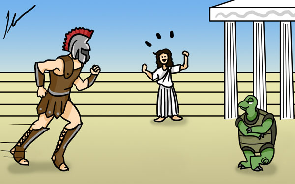 Acompanhe a resposta-explicação para o Desafio de Filosofia #3: Aquiles e a Tartaruga . Será que Aquiles alcançou a tartaruga?